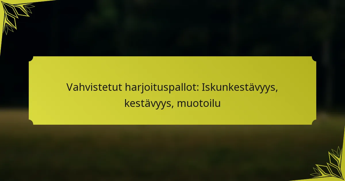 Harjoituspallot ovat erikoislaitteita, jotka on suunniteltu parantamaan taitojen kehittämistä eri urheilulajeissa. Ne näyttelevät keskeistä roolia harjoitustunneilla, auttaen urheilijoita parantamaan tekniikoitaan, koordinaatiotaan ja yleistä suorituskykyään. Oikeanlaisen harjoituspallon valitseminen, joka on räätälöity tiettyyn urheilulajiin ja taitotasoon, voi merkittävästi nostaa harjoituskokemustasi.